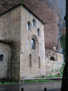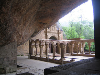 Ich bin dann zuerst einmal in die Bar und habe einen Kaffee getrunken und ein Bocadillo gegessen. Das neue Kloster besteht vor allem aus einem Museum und das habe ich mir dann angeschaut. Man erfaehrt viel ueber die Geschichte und die Lebensweise der Moenche. Es war ganz interessant. Ich war kaum im Museum hat es wie aus Kuebeln angefangen zu regnen und ich durfte in diesem Moment nicht daran denken, dass ich ja noch den Berg runterlaufen muss. In San Juan de la Pena gibt es ja leider keine Albergue fuer die Peregrinos.