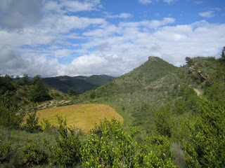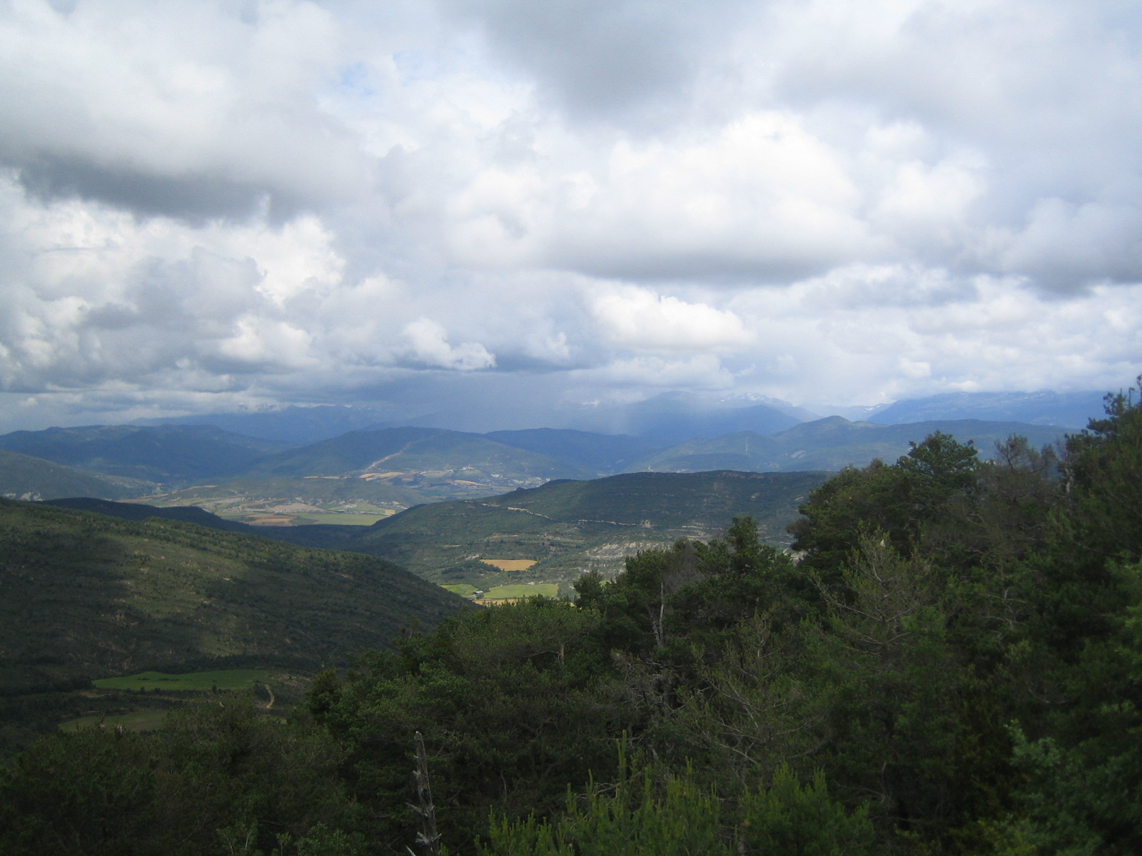 In Attares war ich schneller als ich gedacht hatte und von da aus haetten es dann noch 1.5 Std. sein sollen. Na ich habe mich ja sowas von getaeuscht die 3.5 Std. sollten sich noch endlos in die Laenge ziehen. Von Attares ging es dann bald ziemlich steil und endlos den Berg hinauf. Also wenn ich gewusst haette worauf ich mich einlasse haette ich San Juan de la Pena wohl schweren Herzens links liegen lassen. Als ich total erschoepft oben ankam habe ich zuerst einmal Pause gemacht, die schoene Aussicht genossen und ein paar SMS verschickt. Ich war bester Stimmung und glaubte zu diesem Zeitpunkt kurz vor dem Kloster zu sein.