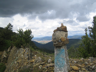 Hatte mich schon auf das Haus von Senora Felisa gefreut wo man so gemuetlich sitzten konnte und Brot, Konfituere, Feigen und Kaffee bekam. Leider wird dieser schöne Brauch nicht mehr fortgefuehrt. Senora Felisa ist 2002 verstorben, dann hat aber ihre Tochter weiter gemacht. Jetzt steht nur noch eine alte Frau an einem kleinen Stand, verkauft Pilgerutensilien und kalte Getraenke und stempelt den Credencial der Pilger mit dem beruehmten Stempel: Figas, Agua i Amor ab. Hat mich ein bisschen traurig gestimmt muss ich sagen