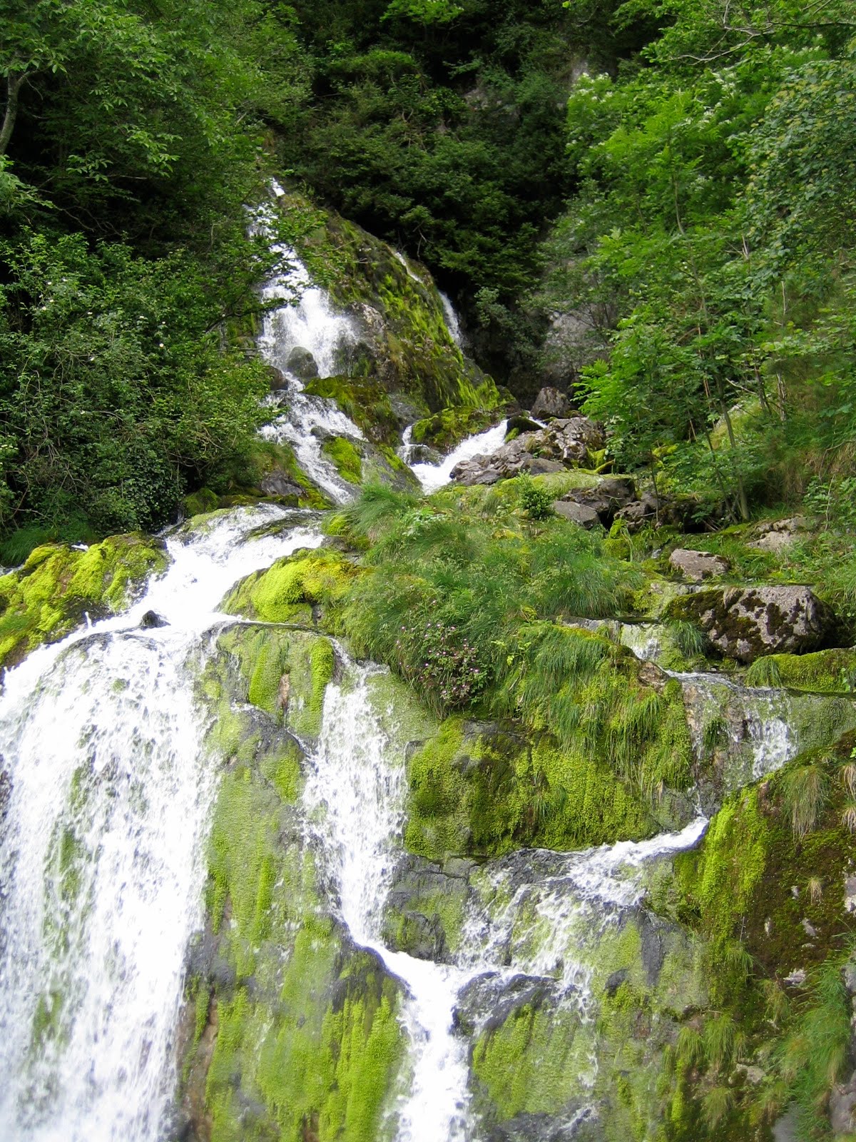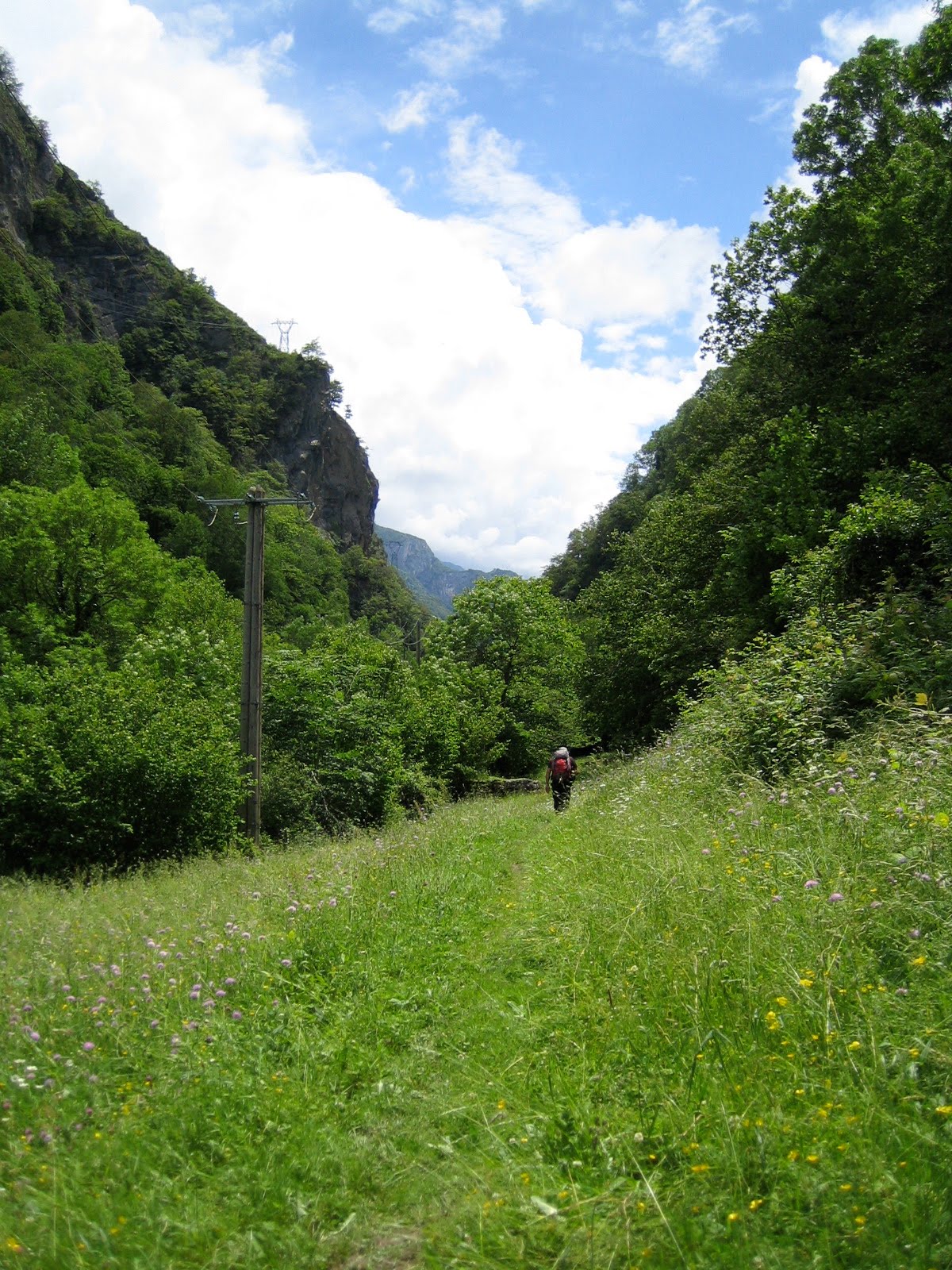 Heute Morgen habe ich mein letztes Stück Brot gegessen und bin dann kurz vor 8.00 Richtung Borce gestartet. Bald kam mir schon Tine entgegen und sagte sie würde die Strasse nehmen da der Weg zu schwierig sei und man zu grosse Schritte machen müsse. Dazu muss man sagen, dass sie mit einem riesigen Rucksack von 14 kg rumläuft. Weiss nicht wie sie das schafft die gute Frau. Dachte mir, dass ich es trotzdem versuchen will. Es ging zügig voran auf einem ähnlichen Weg wie gestern aber dann war plötzlich auf ca. 2 – 3 m Länge der Weg eingebrochen und ein Durchkommen war unmöglich. Es wäre schlicht und einfach zu gefährlich gewesen und ich bin nicht ängstlich aber leichtsinnig bin ich auch nicht. Der Weg sah aus als könnte noch mehr einbrechen wenn man einen Fuss darauf setzt. Und darunter war auch wieder ein Abhang. Habe dann beschlossen umzukehren und der Nationalstrasse entlang zu laufen. Bald schon ist mir Bernard entgegengekommen und ich habe ihm gesagt, dass der Weg nicht passierbar sei. Wir sind dann den ganzen Tag zusammen weitergelaufen und es ging oft der Nationalstrasse entlang was nicht sehr lustig war, da man immer aufpassen muss wegen den schnell fahrenden Autos. Aber die Umgebung war mal wieder überwältigend und es gab auch schöne kleine Wege abseits der Strasse.