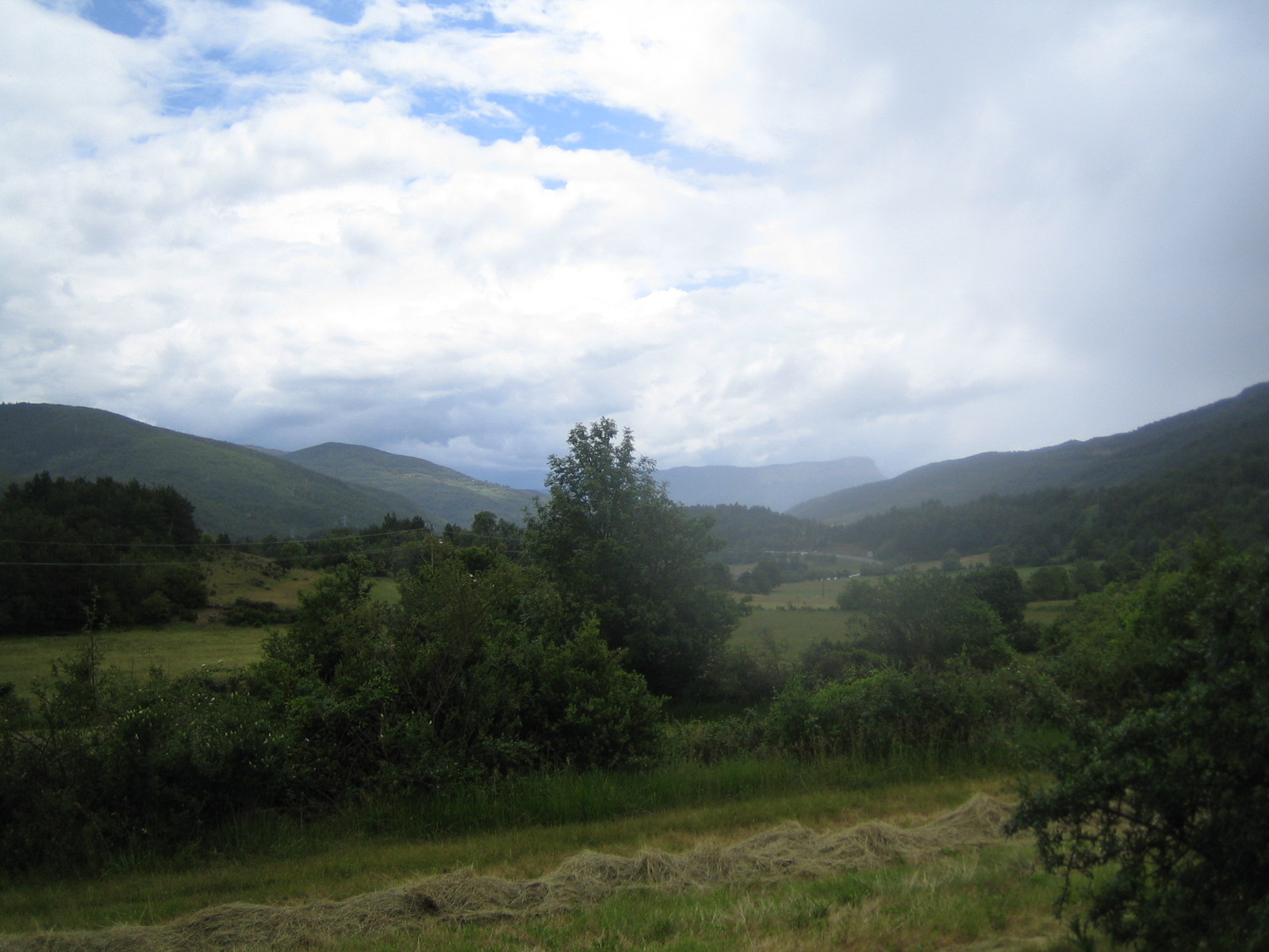 Ich bin heute um 7.30 ohne Frühstück und nach einer eher schlaflosen Nacht los vom Col du Somport. Als ich aufgestanden bin war alles noch in tiefstem Nebel aber als ich dann los bin war der Nebel weg und das Wetter gar nicht so schlecht. Man konnte in der Ferne auf jeden Fall schon einen blauen Streifen am Horizont ausmachen.
