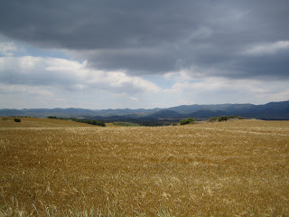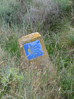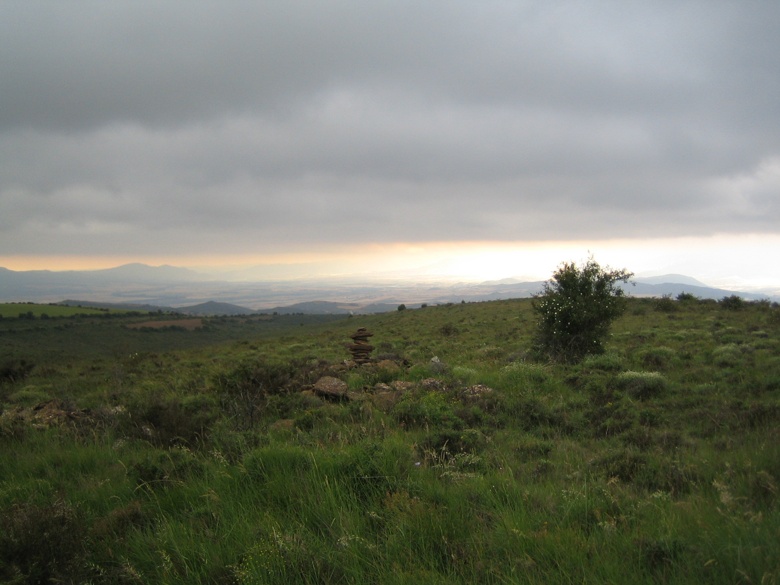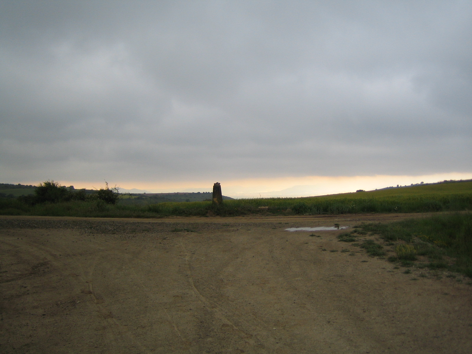Heute habe ich Aragon schweren Herzens hinter mir gelassen, es war so wunderschoen und habe Navarra betreten. Die Landschaft hat sich ziemlich rasch veraendert und der Weg ging auf Pisten vor allem geradeaus. Dazu hat es stark gewindet. Es hat mich total an den Alto del Perdon erinnert da hat es auch so gewindet und vor allem sieht man jetzt wieder alle diese Windraeder auf den Bergruecken.