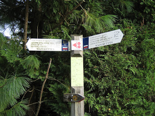 Der Weg war sehr schön heute, viel rauf und runter. Die Sonne hat sich heute versteckt, wahrscheinlich hatte sie ein schlechtes Gewissen, dass sie mich gestern so gequält hat. Am Nachmittag hat sie sich dann komplett verabschiedet und es hat angefangen zu nieseln. Musste meine Pellerine aber nicht heraus kramen.