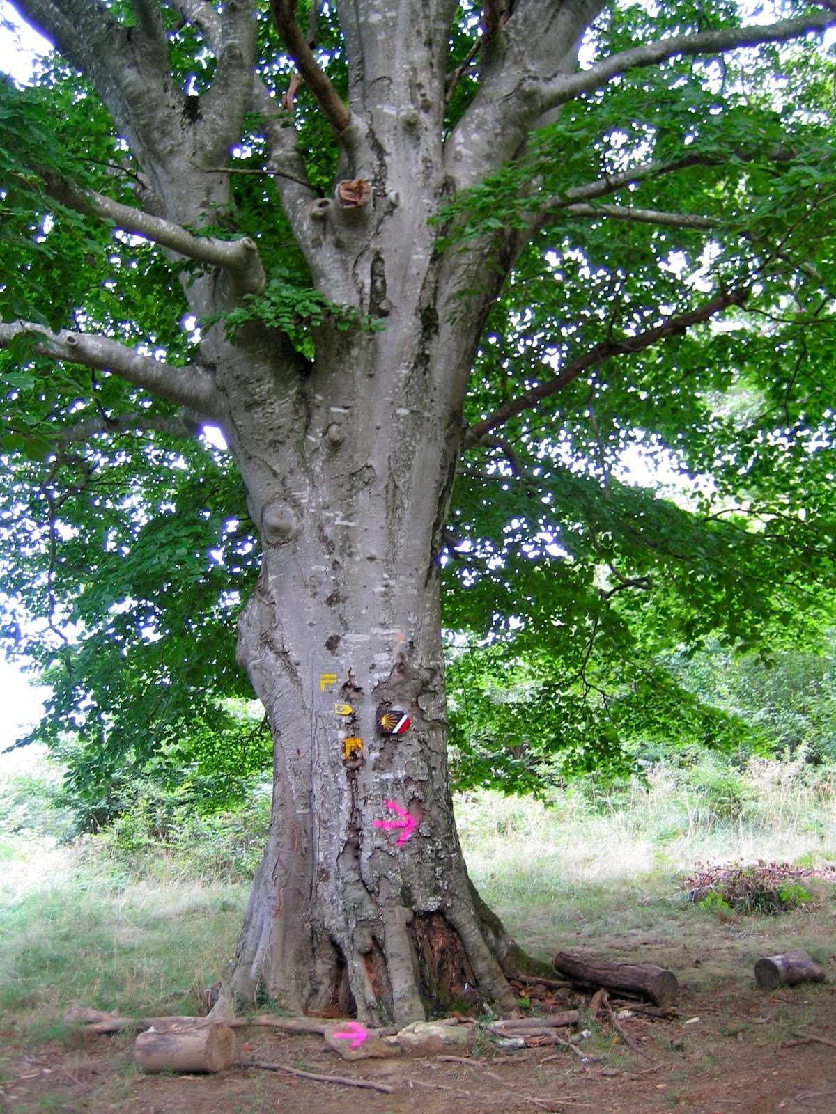 Mitten im Wald, so etwa auf halber Strecke, sah ich plötzlich ein paar ältere Leute, die an einem Tisch standen und Essen bereitstellten. Ich bin dann hin und habe gefragt wen sie denn erwarten würden? Mich vielleicht oder Scharen von Pilgern? Hatte irgendwie was sureales mitten im Wald. Es hat sich dann herausgestellt, dass ein Velorennen stattfindet. Sie haben dann gemeint, ich solle nur zugreifen, schließlich müsse ich bei Kräften bleiben…