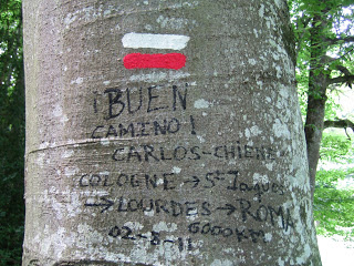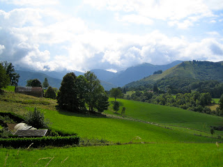 Der heutige Tag fing ähnlich an wie der Gestrige, in dem ich nämlich konstant den Weg gesucht habe. Brauche einfach eine bessere Karte. Wollte auf der Strasse eine Abkürzung nehmen aber nach all dem suchen und fragen war ich schließlich nicht schneller in Lortet als wenn ich den GR genommen hätte. Bin dann schön brav dem GR gefolgt und wurde prompt wieder steil hinauf und steil herunter gejagt. Um 13.00 war ich endlich in Esparros und da standen dann 3.5 Std. bis Espèche, was erst meine zweitletzte Station darstellte..:-(. Wollte nicht schon wieder klein beigeben und habe mich mutig auf den Weg gemacht. Meine innere Stimme hat mich ziemlich laut angeschnauzt ob ich noch alle Tassen im Schrank habe. Bin dann in eine Pizzeria, die eigentlich zu hatte und habe nach einer Abkürzung auf der Strasse gefragt. Der Monsieur war nicht gerade freundlich und hat mir so schnell, schnell erklärt wo es durchgeht wie wenn das die einfachste Sache der Welt wäre und ich mich nur saublöd anstellen würde. Man sagt jeder weint mindestens einmal auf dem Camino, mich hatte er jetzt gerade wieder soweit und ich fühlte mich hundeelend. Habe dann versucht mit meiner Karte irgendwie den Weg zu finden, da kam mir ein Motorradfahrer entgegen und ich habe ihm gewunken er solle anhalten. Der war dann total nett und hat mir in aller Ruhe den Weg erklärt und ich habe es gleich auf Anhieb kapiert! Da ging es mir gleich wieder besser. Ich habe ca. 2 Std. eingespart und war dadurch um 17.00 im Gîte. Was auch spät ist, ich war im Ganzen nämlich 9 Std. unterwegs..:-(.