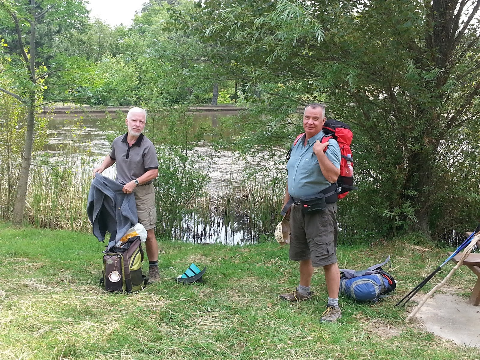 Ich hatte ja das Zelt und eine Isomatte dabei, nur hatte ich partout keine Lust draussen zu schlafen sondern war lieber in den Herbergen mit den anderen Pilgern. Am 2. oder 3. Tag habe ich bereits alles wieder nach Hause geschickt! War eine Furzidee von mir. Dazu war es auch noch viel zu schwer für mich und meine Füsse. Fühlte mich total erleichtert, als ich die Sachen wieder los war. Auch wenn mein Rucksack dadurch „nur“ 1.5 kg leichter wurde fühlte es sich so an als wäre ich ein paar Steine losgeworden! Damit ist diese Sache auch abgehakt und ich habe ein Zelt und eine Isomatte zu verkaufen…;-). Ich habe das Zelt übrigens bei mir im Garten getestet und zwar bei Regen, es ist trocken geblieben. An sich eigentlich eine gute Sache so ein Zelt aber nur auf Wegen wo es nicht genügend Herbergen hat oder wenn man den ganzen Weg läuft und aufs Geld schauen muss.