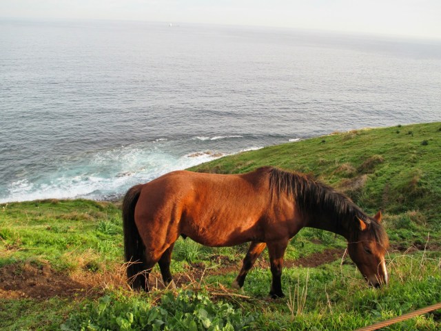 Oben angekommen wurde ich dafür mit einem wunderschönen Panorama belohnt über die Bucht von Pobena. Es ging dann weiter auf einem Panoramaweg der Küste entlang und das war dann auch schon das schönste Stück des Weges. Der Rest war vor allem Nationalstraße. Ein kurzes Stück ging es noch auf einer Schotterpiste runter zum Strand von Miono, den ich ausgiebig genoss, um dann auf der anderen Seite wieder hoch zur Nationalstraße zu gehen. Ich war heute aber schon viel entspannter und es war auch nicht so heiß. Heute habe ich übrigens den ersten Pilger getroffen. Er kommt aus Barcelona und ist ein cooler Typ mit wenigen Rastalocken. Wir sind zusammen in der Albergue und ich weiß noch nicht mal seinen Namen aber das werde ich schon noch rausfinden…😉.