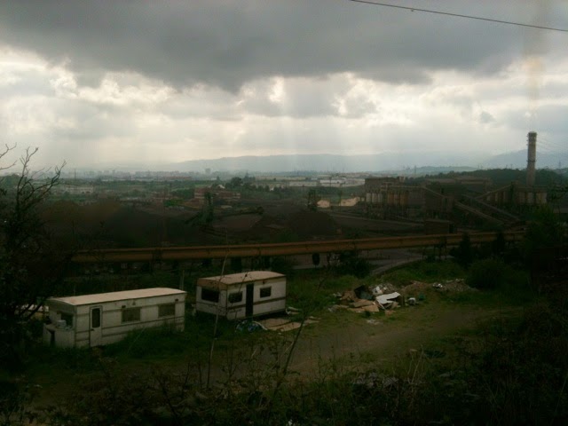 Der Einmarsch nach Aviles war einfach nur schrecklich. Viel Industrie, verlotterte Arbeitersiedlungen einfach nur deprimierend… Das letzte Stück war so anstrengend vor allem auch weil mir die Füße weh taten vom vielen auf der Strasse laufen. In einer Bar habe ich dann angehalten und eine Cerveza con Limon getrunken um meine Stimmung aufzubessern. Die Senora war sehr nett und hat mir ganz viele Pinchos hingestellt. Dies sind kleine Appetithäppchen dies es in fast allen Bars zum Bier gibt. In der Bar war ein chinesisches Pärchen und er sass am Spielautomat und hat die Kiste praktisch geleert. Er hat mehrere Säckchen voller 1€ Münzen mit nach Hause genommen. Es hat sich angefühlt als würde er das täglich so machen. Auch eine interessante Art sein Geld zu verdienen. Habe mich dann überwinden müssen um den Rest des Weges anzupacken.