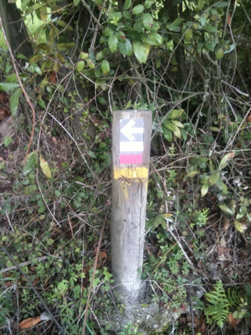 Wenn man genau hinschaut sieht man auf dem Wegzeichen eine Eidechse.