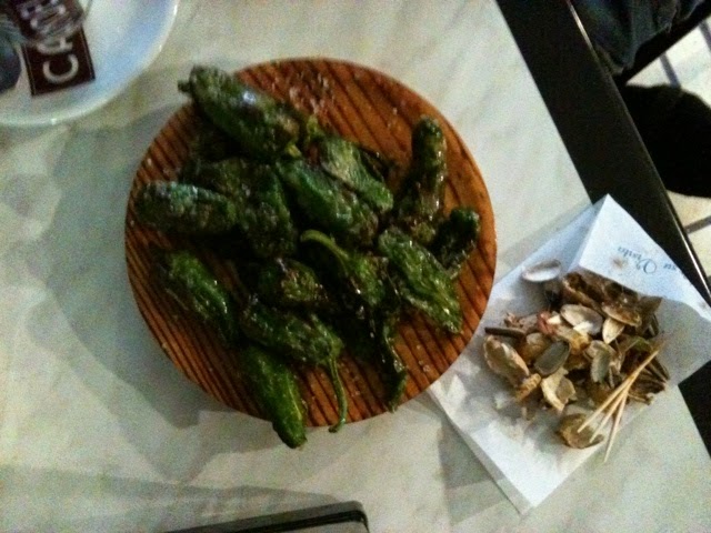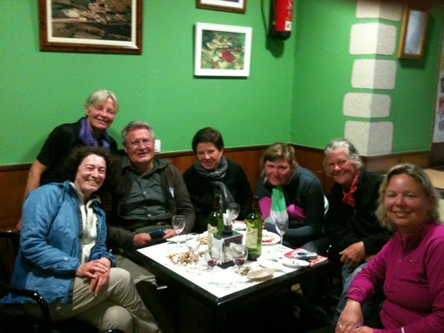 Jetzt habe ich unter der Kleidung meine Skiunterwäsche an und sitzest allen Pilgern in der Bar. Wir überbrücken die Zeit bis zum Essen mit Tapas und Wein.