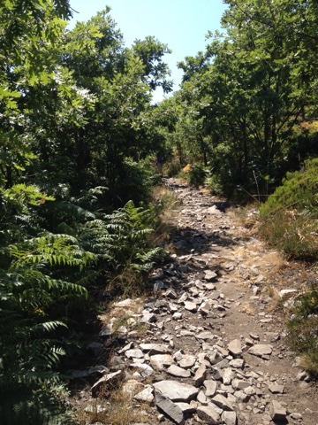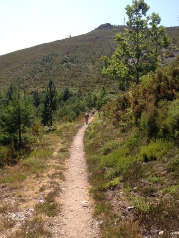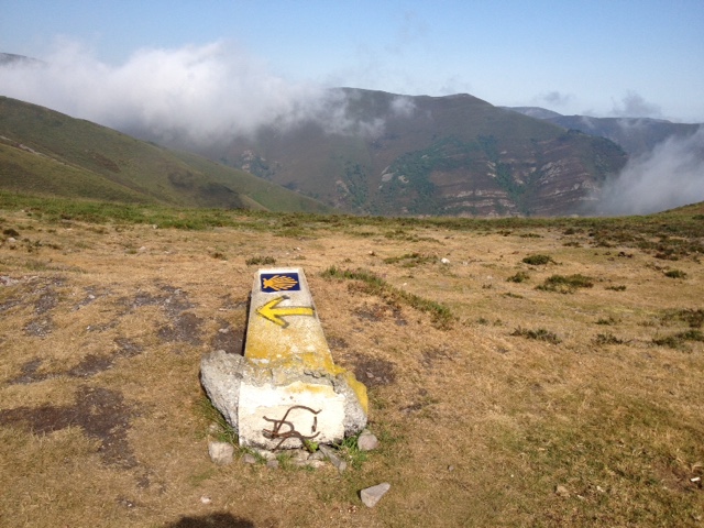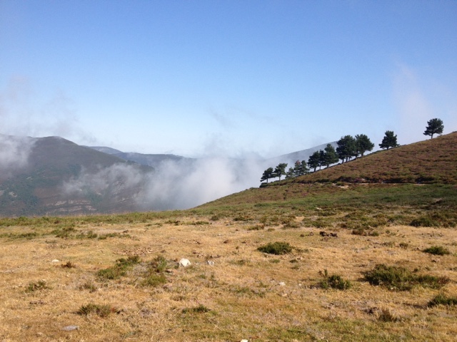 Die Strecke heute war sensationell schön aber auch sehr anstrengend. Zuerst ging es steil hoch und dann lief man ca. 7km auf einem Höhenweg mit grandioser Aussicht. Oben hatte es Bergkühe und Wilde Pferde. Auf dem Weg kam man an alten Pilgerhospizen vorbei wo leider nur noch ein paar Ruinen davon übrig sind.