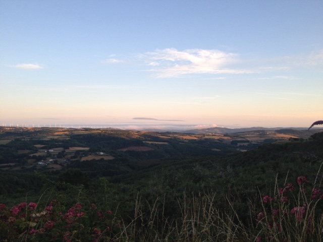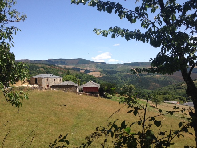 Pilgern ist Schwerstarbeit. Habe mal wieder trotz Schlaftablette schlecht geschlafen. Um 1.00h nachts musste ich aufs Klo und konnte dann fast nicht mehr einschlafen. Habe mich kurz um 6.00h aus dem Schlafsaal geschlichen. Kein einfaches Unterfangen wenn man am Abend vorher nichts vorbereitet hat und man noch alle seine sieben Sachen zusammensuchen muss. Habe einfach alles in den Rucksack geschmissen und in der Küche dann meinen Rucksack gepackt. Meine Stummung war im Keller, vor allem auch weil ich ohne Frühstück starten musste. Aber siehe da es gab eine Bar an der Hauptstraße, die um 6.45h bereits offen hatte. Kaffee, frisch gepresster Orangensaft und eine Kuchenspezialität von Fonsagrada. Mein Tag war gerettet und zudem traumhaft schön. Andrea habe ich nicht gesehen, da sie heute 8km weiter laufen wollte und deshalb schon um 6.00h gestartet ist. Dafür bin ich immer wieder Stiene und Lisa begegnet und auch dem französischen Pärchen aus Nancy, welches zu Hause gestartet ist. Jean Luc macht sehr schöne Tuschzeichnungen und wenn sie zurück sind vom Camino will er ein Buch veröffentlichen. Habe ihm meine Adresse gegeben weil ich natürlich ein Exemplar haben möchte.