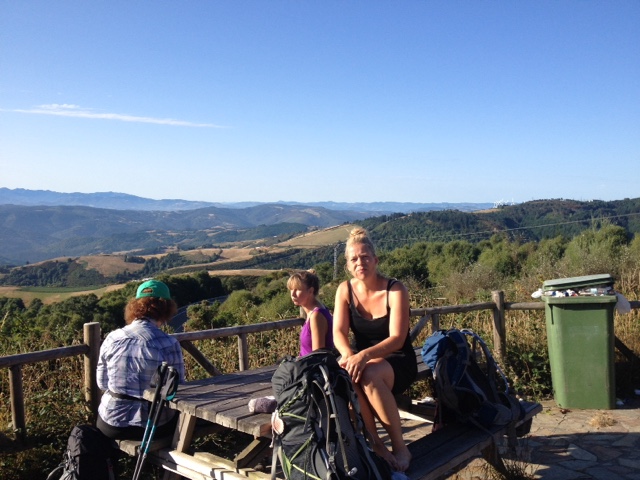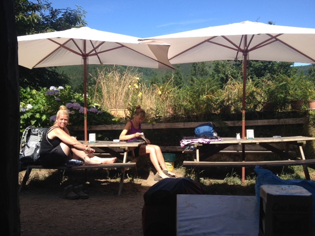 Stiene und Lissa in der Casa Meson. Hier sind wir über eine Stunde hängen geblieben und haben Tostados mit Tomaten und Olivenöl gegessen. Dazu gab es Sangria. Der nachfolgende Aufstieg war dementsprechend heftig.
