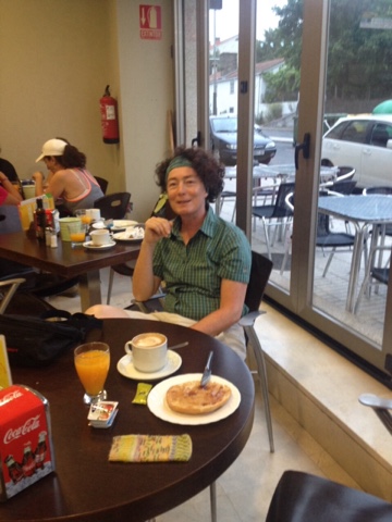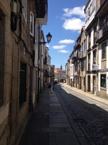 Das war noch mal ein richtig harter Tag! Nicht von der Strecke her und auch nicht die Anzahl der Kilometer. Ich hatte die Nacht vorher kaum geschlafen. Bin um 1.30h aufgewacht und konnte dann nicht mehr einschlafen. Andrea hat neben mir seelenruhig geschnarcht und sogar die Schallmauer meiner Ohropax durchbrochen. Am nächsten Morgen war ich dementsprechend fertig und mein Blutdruck war sehr tief. Bin kaum in die Gänge gekommen. Die ersten 4km bin ich richtig geschlichen und in der ersten Bar gab es gleich mal einen Cafe con Leche. Was aber auch nicht viel genutzt hat. Es ging im gleichen Schneckentempo weiter. Es war auch nicht gerade motivierend, dass ich immer wieder in den Maßen der Tourigrinos laufen musste. So nennt man hier die Jakobswegtouristen. Der Pilgergruss ist dann nicht mehr Buen camino sondern Buen tourismo… Diese Gruppen laufen mit einem Miniruckksack und machen besonders viel Lärm mit dem hölzernen Wanderstock. Sie rauschen leichtfüßig an den Pilgern vorbei und rufen die ganze Zeit Buen camino. Außerdem haben sie Navigationsgeräte dabei, die dann immer vor sich hin labern: in 100m gehen sie nach rechts, nächste Bar/Herberge in 2km… Muss ich überhaupt erwähnen, dass ich ziemlich genervt war außerdem ist der Camino ab Sarria oder Lugo, 100km vor Santiago, idiotensicher ausgeschildert. Die Jugendgruppen hatten dann noch laute Musik. Ich glaube die Spanier mögen die Stille nicht besonders. Genug geklagt, ich hatte wirklich einen schlechten Tag eingezogen.