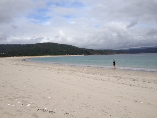 Zu diesem Strand bin ich unterwegs, nachdem ich in einem Restaurant am Meer Pulpo (Tintenfisch) galliego gegessen habe.