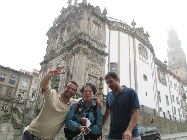 | Die nächtlichen Partyschwärmer auf ihrem Heimweg, die mich netterweise aus Porto verabschiedet haben und mir ein Bom Caminho mit auf den Weg gegeben haben. Ich sehe ein bisschen bedeppert aus, habe ja auch nicht gut geschlafen. |