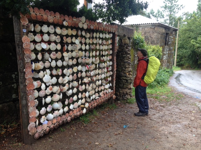 | Kunst am Weg. Nick bewundert die verschiedenen Jakobsmuscheln. |