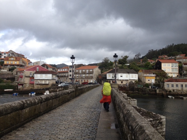 | Nick läuft vor mir, es zieht ihn ins Restaurant am Ende der Brücke wo wir zu Mittag essen werden bevor es noch 12 km weiter nach Pontevedra geht. |