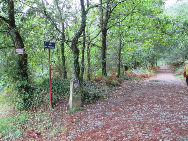 Heute war der erste Regentag und ich bin richtig nass geworden. Wenn es in Galicien regnet dann richtig. Hatte zum ersten Mal nasse Füße da ich nicht mehr mit Goretex Wanderschuhen laufe dafür habe ich jetzt wasserfeste Socken dabei. Leider habe ich aber heute Morgen nicht daran gedacht sie anzuziehen. Als ich beim Mittagessen endlich die Socken gewechselt habe war es natürlich vorbei mit dem Regen und es war schwül und heiß wie in den Tropen. Da waren meine Goretex Socken wieder fehl am Platz und ich hatte ziemlich heiße Füße. Aber ich habe tapfer durchgehalten bis zum Schluss. Bin heute 28km gelaufen, meine längste Etappe bisher. War die meiste Zeit mit Nick unterwegs einem Engländer, er ist bereits in Lissabon gestartet. Hat sich einfach so ergeben und war ganz angenehm.