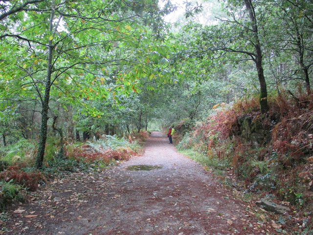 Ich bin immer noch erkältet und habe vor allem nachts heftige Hustenanfälle. Kann seit mehreren Nächten kaum schlafen. Letzte Nacht ist dann Nick zu mir gekommen und hat mich gefragt ob ich etwas brauche und ob er etwas tun könne. Das fand ich total süß auch wenn er nichts tun konnte aber ich fühlte mich damit nicht mehr so alleine. Am Morgen fühlte ich mich ziemlich erschlagen und glaubte zu diesem Zeitpunkt nicht dass ich die ganze Etappe würde laufen können. Wollte im nächsten Städtchen den Bus nehmen. Dann ging es aber immer besser und zuletzt bin ich doch den ganzen Weg gelaufen. Es war zudem eine sehr schöne Etappe mit viel galicischem Wald den ich so liebe. Wenig Asphalt, da geht es den Füßen automatisch besser.