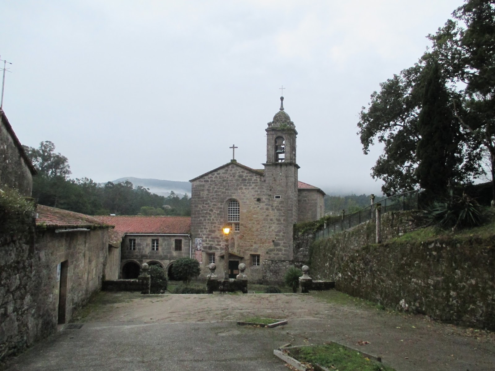 Nachmittags wurde das Wetter besser und Gott sei Dank auch meine Stimmung. Hatte beschlossen, den Umweg zum Franziskanerkloster in Herbon zu nehmen und stand damit ganz alleine denn alle anderen sind direkt nach Padron. Ich wollte aber den letzten Abend vor Santiago ruhig und beschaulich verbringen. Da ist ein Kloster genau das Richtige. Der Weg dorthin war ziemlich abenteuerlich und ging über Pfade die man teilweise kaum sah. Schlussendlich sass ich vor der verschlossenen Tür der Herberge und hoffte darauf, dass um 16.00h die Türe aufgeht. Was dann auch tatsächlich geschah. Die Herberge ist total schön und wir sind nur zu viert. Jeder hat sich ein Bett in einer anderen Ecke des Raumes ausgesucht. Alles Pilger die ich noch nie gesehen habe. Um 19.00 gab es eine Führung durch das Kloster, um 20.00h war Messe und um 21.00h gab es Essen. War richtig schön, solche ursprünglichen Orte für Pilger sollte es mehr geben. Habe hier richtig gut auftanken können für die letzten 27km nach Santiago.