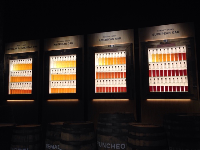 Wie älter der Whisky wie dünkler die Farbe und dann kommt es noch auf das Fass drauf an. Die mit der rötlichen Farbe werden in benutzten Sherryfässer gelagert.