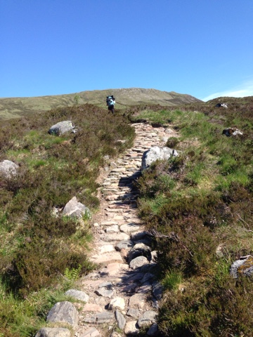 Von Kungshouse ging es auf den Devils Staircase zum Pass hinauf. Das war tierisch anstrengend und ich spürte noch die Müdigkeit von gestern in den Knochen. Ich habe mich mühsamst hochgequält und durfte oben angekommen die schöne Aussicht geniessen. Auf dem Pass sind wir lange sitzen geblieben und haben es genossen das schlimmste bereits hinter uns zu haben. Wir wussten auch, dass es heute nur 14km waren und nahmen es daher gemütlich. Dann ging es in stetigem Bergab Richtung Kinlochleven. Beim Abwärtsgehen bin ich dann ausgerutscht und so blöd auf meinen Wanderstock gefallen, dass er gebrochen ist. DasDummevdaran ist, dass ich die Wanderstöcke benötige um das Zelt aufzubauen. Ich habe mir dann aber nicht allzu große Gedanken gemacht und einfach gedacht „the trail provides“. Das bedeutet soviel wie der Trail schaut zu einem. Und so wars dann auch. Als wir auf dem Campingplatz angekommen sind habe ich den Campingwart beiläufig gefragt ob er nicht zufällig einen Wanderstock übrig habe? Woraufhin er schnell nach hinten gegangen ist, mit 2 Wanderstöcken in der Hand zurück kam und meinte die könne ich haben. Ich habe dann gesagt ichbwürde sie morgen früh wieder vor die Tür stellen, worauf er meinte ich könne sie behalten. Ist das nicht unglaublich? Mit dem Adapter für das Telefon war es das Gleiche. Ih konnte mein Telefon nie richtig aufladen weil der Adapter nichtvrichtug passte. Mir ging langsam der Saft aus und ohne Handy hätte ich auch keinecFotos mehr machen können. Ich habe dann einfach gedacht, dass sich eine Lösung finden würde. Am nächsten Tag traf ich Sascha und ihre Mütter und erzählte ihnen mein Problem. Sascha meinte dann sie hätte die Lösung für mein Problem. Und so war es dann auch. The Trail provides…. Ich wolltecihrvden Adapter abkaufen aber sie wollte nichts dafür, so habe ich sie heute Abend zu einem Whisky eingeladen.