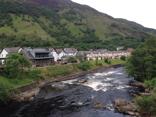 Kinlochleven am frühen Morgen. Auf der anderen Seite sieht man die Terrasse wo Worcesters noch Bier getrunken haben.