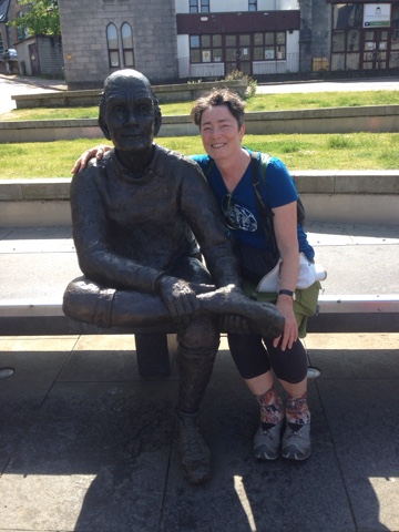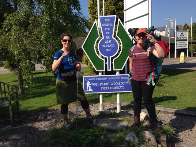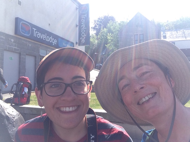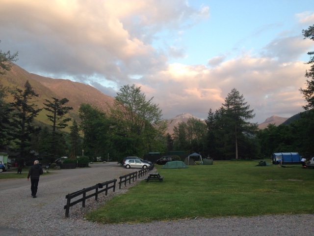 So jetzt sitze ich alleine im Restaurant wo wir gestern bereits gegessen haben aber es ist ok. Wollte heute eigentlich gleich weiterlaufen aber dann beschloss ich einen Tag auszusetzen weil mein rechter Fuß mir ziemlich weh tat. Es ist die Stelle wo ich vor 1.5 Jahren den Fuß gebrochen habe. Es hatte gestern schon ziemlich weh getan und ich musste Ibuprofen nehmen. Bin heute Morgen mit Caroline und einem jungen Brasilianer, habe es leider verpasst nach seinem Namen zu fragen, nach Fort William gelaufen. In Fort William ist das offizielle Ende des West Highland Weges. Wir haben die offiziellen Fotos gemacht und haben uns dann um wichtigeres gekümmert, nämlich endlich Zu frühstücken. Für mich war es zwar bereits das zweite Frühstück, da ich früh aufgestanden bin während die anderen beiden noch im Bett rumhingen. Hier in Schottland fängt es um 3.30 bereits mit dem Vogelgezwitscher an. Würde ich nicht mit Augenbinde und Ohropax schlafen würden mich die Vögel bereits dann aus dem Bett jagen. Meistens fange ich so um 6.00h morgens an zusammenzupacken und gegen 7.45/8.00 laufe ich dann los. Um 21.00h bin ich meistens schon im Zelt um alles für den morgigen Tag vorzubereiten und um 22.00h fallen mir bereits die Augen zu.