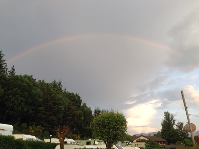 Bin auf einem kleinen Campingplatz 1.5km entfernt vom Great Glen Way (GGW). Was für ein Kontrastprogramm zu den letzten beiden Tagen. Da waren so viele Menschen und jetzt ist nur noch ein anderer Hiker aus Holland hier. Es ist absolut friedlich und ich genieße das sehr. Vorher hat es geblitzt, gedonnert und ein paar Tropfen geregnet. Wir haben schnell die Wäsche rein geräumt, unser Essen verräumt und dann war es auch schon wieder vorbei.
