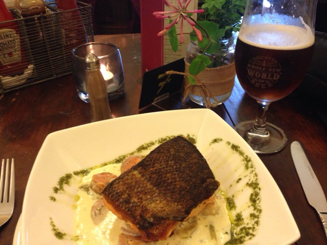 Zum Abendessen gab es Lachs an Dillsauce und zur Vorspeise die Tagessuppe. Lecker!