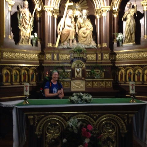 Ganz bis Pamplona habe ich es leider nicht geschafft. Die Sehne an meinem Knie hat plötzlich angefangen zu Schmerzen und deshalb habe ich bereits in Trinidad de Arre gestoppt. Der Hospitalero hier guckt glaube ich ein bisschen zu tief ins Rotweinglas aber sonst ist er ganz nett. Er wollte unbedingt ein Foto von mir vor dem Altar der hauseigenen Albergue machen. Er hatte etwas Mühe und irgendwie war immer alles andere auf dem Bild nur nicht ich.