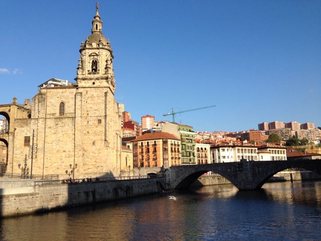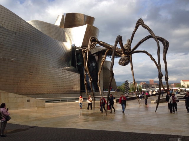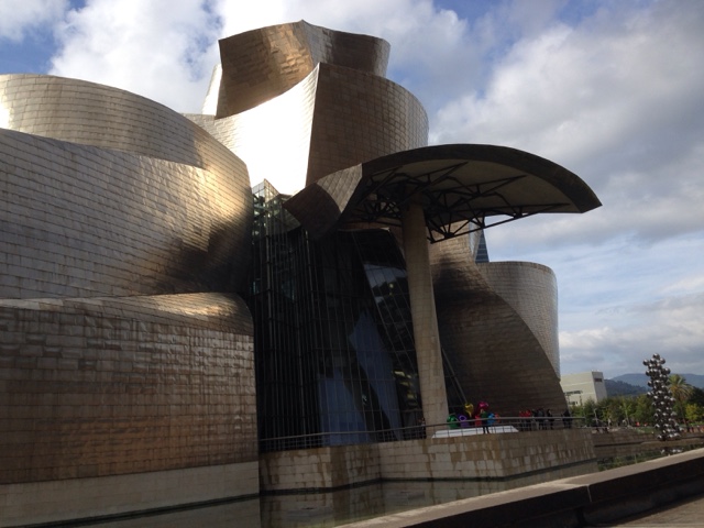 Bin dann beim Guggenheim Museum vorbei und habe in der Bar eine Cerveza getrunken und diese köstlichen Oliven gegessen, die es hier überall gibt. Dann hat es mich doch noch mal gereizt das Museum zu besichtigen. Es gibt ja immer neue Austellungen. Die Sierra Plastiken habe ich zwar letztes Mal schon gesehen aber sie sind trotzdem eindrücklich. Es gab noch eine Ausstellung von Francis Bacon aber ehrlich gesagt gefallen mir seine Nilder nicht sonderlich. Seine Darstellungen von nackten Menschen sieht aus wie rohes Fleisch oder wie aufgeschnittene Tiere in der Metzgerei. Meine Kopfschmerzen wurden dadurch auch nicht besser und ich beschloss zurück ins Hotel zu gehen und ein kleines Nickerchen zu machen um meinen Txakoli-Rausch auszuschlafen.