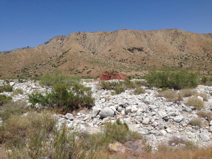 Im Moment wo ich angefangen habe zu laufen, habe ich gemerkt, dass meine Beine sich wie Gummi anfühlen und ich habe mich schwach gefühlt. Habe dann früher Pause gemacht und gefrühstückt aber das komische Gefühl wollte einfach nicht weggehen. Schien nicht mein Tag zu sein heute. Es war auch der erste Tag wo es wieder heiss war. Das schöne heute war, dass wir nicht viel Wasser schleppen mussten, da wir die ganze Strecke dem Mission Creek entlang gingen. Man konnte immer wieder mal Wasser auffüllen, Socken und Unterhosen auswaschen oder einfach den Sonnenhut ins Wasser tunken und zur Abkühlung nass aufsetzen.