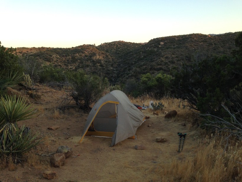 Um 19.00 bin ich endlich angekommen und es reichte gerade noch um etwas zu essen, in die Büsche zu gehen und dann ab ins Zelt zum Aufwärmen. Es war bitter kalt auf 2350m. Hatte mal wieder alles an was ich dabei hatte. Bin froh um das wärmere Inlet welches ich mir gekauft habe. Meine Oberschenkel und das Gesäß brauchen immer extra lange bis sie warm werden. Habe zuerst gedacht der Schlafsack sei da dünner aber es liegt daran dass diese Stellen wahrscheinlich nicht so sehr durchblutet werden. Bin natürlich auch zum Essen am Picknicktisch gesessen und habe mir den A….. abgefroren.