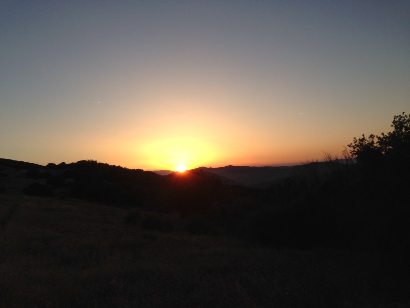 Nach 8 Meilen anstrengendem Aufstieg kamen wir genau richtig für den Sonnenuntergang. Wir entschieden sogleich hier oben zu campieren und das war eine seht gute Entscheidung! Wir haben uns zuerst hingesetzt, den Sonnenuntergang genossen und erst dann das Zelt aufgebaut. Dann war es schon bald 20.30 und wir mussten im Dunkeln essen. Es war einer der ersten warmen Abende wo man einfach draußen sitzen konnte.