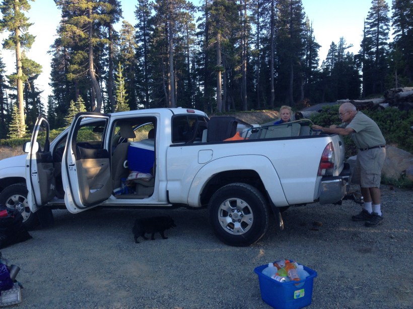 Es war ein Ehepaar, dessen Sohn letztes Jahr den Appalachian Trail gelaufen ist. Er hatte soviel Trail Magic erfahren und Hilfe erhalten, dies wollten sie jetzt auf diese Weise zurück geben. Es gab Hot Dogs, Kartoffelsalat, Tomatensalat, Wassermelone, Kuchen, Bier und Sodas😍😍😍😍😍. Ich habe mich sobrichtig satt gegessen. Es kamen noch 3 weitere PCT Hiker dazu und wir beschlossen bald nicht mehr weit zu laufen mit unseren vollen Bäuchen. Cheese, eine Deitsche und ich haben es gerade noch 0.1 Meile den Hügel hoch geschafft. Die anderen beiden sind in die andere Richtung.