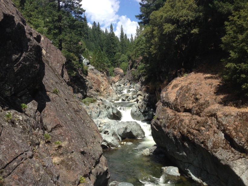 Am Feather River gabs Frühstück. Anschließend habe ich am Fluss noch meine Socken ausgewaschen. Es ist ja nicht so, dass sie wieder sauber wären aber der feine braune Staub und der Schweiß sind weg. Dann ging es weiter den Berg hinauf. Ein Hiker hatte mich informirt, dass ein Teil des Trails gesperrt sei wegen eines umgestürzten Baumes. Er sei aber trotzdem durchgelaufen und es sei gar nicht so schlimm. Na gut dann bin ich halt auch auf dem Trail geblieben und es war wirklich nicht so dramatisch. Ein riesiger Baum lag auf dem Trail aber ich konnte unten durch kriechen ohne den Rucksack auszuziehen.
