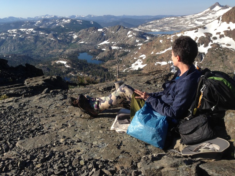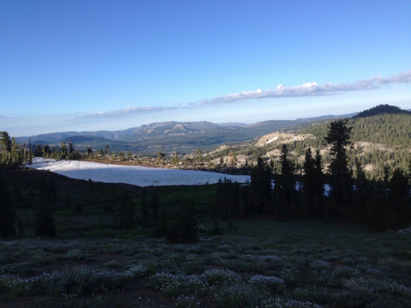 Die Umgebung war unheimlich schön, wahnsinns Aussicht! Ich musste aber auch viel über Schnee laufen und zeitweise sogar mit meinem GPS den Weg suchen. Außerdem hatte es Millionen von Moskitos. Es hat auch wahnsinnig viele Tümpel, Flüsse und dann kommt noch die Schneeschmelze dazu, ein Eldorado für diese Plagegeister. Muss mir in Truckee unbedingt einen Moskitorepellent kaufen mit 100% DEET! Pures Gift aber das einzige was bei diesem Blutsaugern wirklich etwas nützt.
