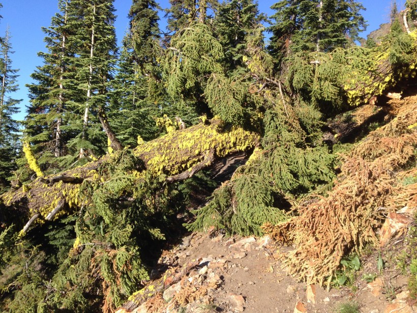 Auf dem Titelbild ist übrigens kein grünes Monster zu sehen, das ist der Trail begraben unter einem Baum. Wir mussten uns auf allen vieren durchzwängen.