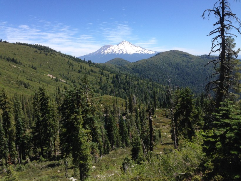 Die Trinity Alps sind wunderschön! Es war eine Freude hier durchzulaufen. Weite Ausblicke und Mount Shasta ganz nahe. Dieser Berg ist wirklich fotogen, ich weiß gar nicht wieviele Aufnahmen ich davon gemacht habe. Morgen werden wir in der gleichnamigen Stadt sein. Mount Shasta ist ein hoher Berg, den man auch Besteigen kann aber das lass ich lieber. Konnte mir seit zwei Wochen anschauen wieviel Schnee noch auf dem Berg liegt. Da kann man noch Ski fahren! Nein danke!