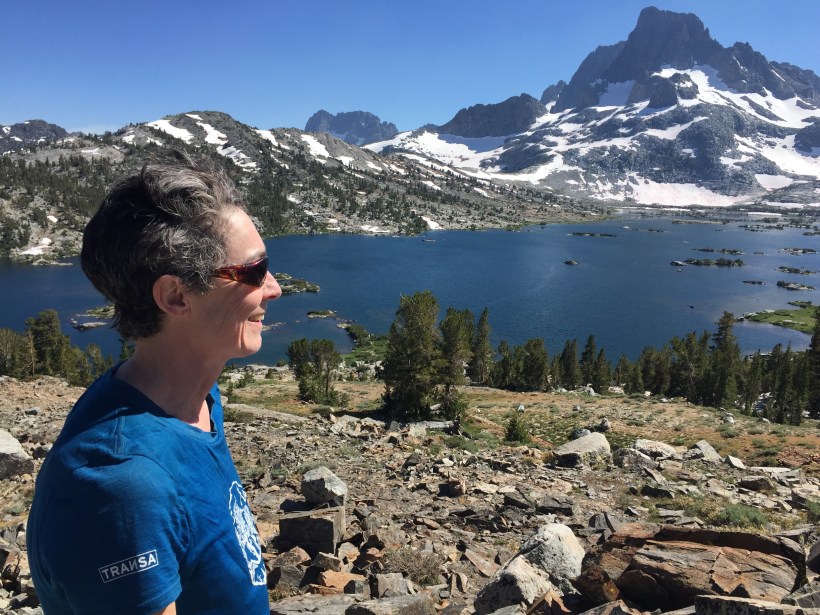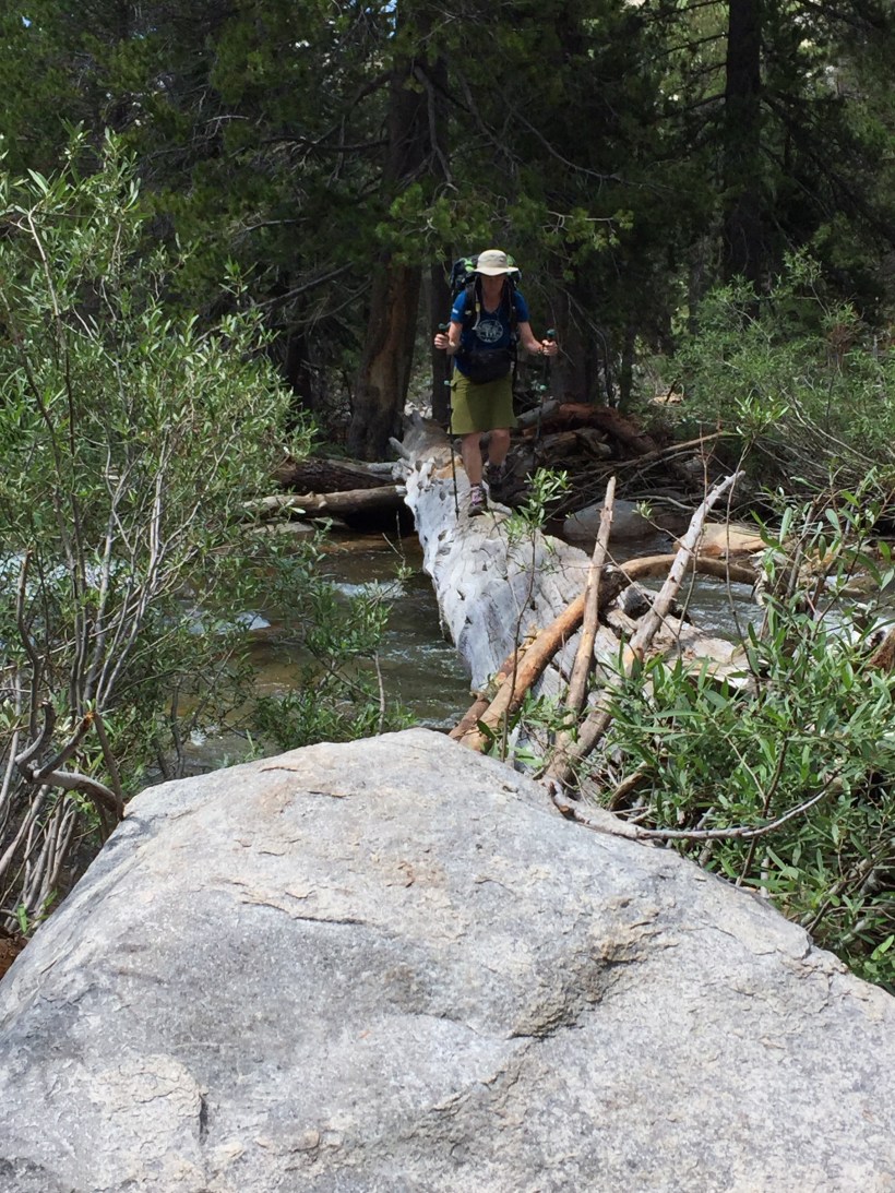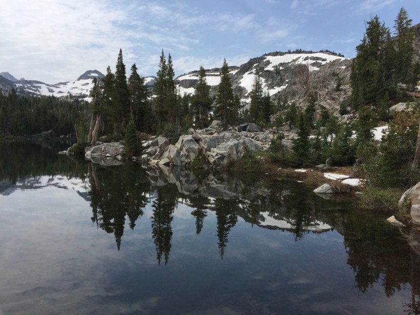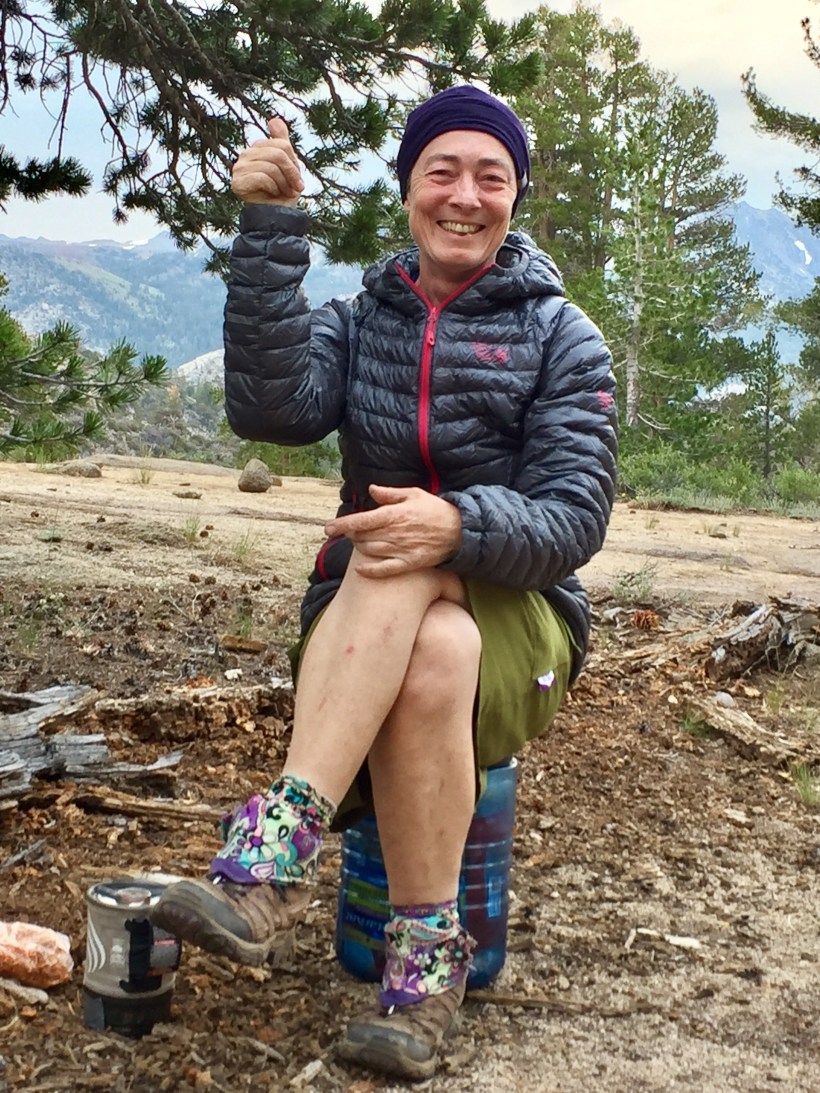 Ich bin um 5.45 los und sagte D-Hiker, dass ich weiter vorne in die Büsche gehen würde um mich zu erleichtern. Als ich gerade hinter einem Baum war ist sie an mir vorbeigestürmt und hat meinen Rucksack wohl nicht gesehen. Ich bin ihr dann hinterher, musste aber immer wieder anhalten um Fotos vom See beim Sonnenaufgang zu machen. Es ging dann über eine Baumstammbrücke und danach bin ich falsch links abgebogen. Ich bin über die Felsen gelaufen und nach ca. 80m sagte mir meine innere Stimme, dass ich mich verirrt hatte. Ich habe auf der App nachgeschaut und musste zur Brücke zurück laufen. Der Weg ging rechts dem See entlang. Ich bin dann zügig den Berg hinauf mit der Vorstellung, dass D-Hiker vor mir ist. Ich habe nach den Fussspuren von ihr gesucht aber nicht gefunden. So langsam dämmerte mir, dass sie hinter mir sein musste. Ich informierte eine andere Hikerin im Falle, dass sie sie sehen würde und beschloss an einem sonnigen Ort auf sie zu warten. Ich hatte mich gerade eingerichtet als sie schnellen Schrittes auf mich zu kam. D-Hiker hatte sich genau an der gleichen Stelle verirrt wie ich, nur hatte sie es erst später bemerkt und war deshalb hinter mir. Nach diesen Verirrungen brauchten wir erst einmal Frühstück.
