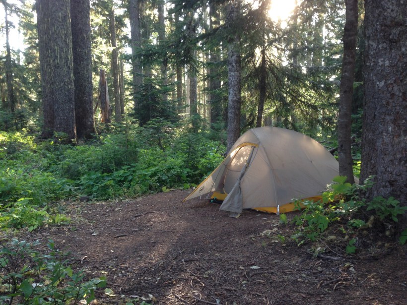 Ich campe auf einer wunderschönen Waldlichtung. Als ich mein Zelt aufbaute kam ein anderer PCT Hiker vorbei. Wir kamen ins Gespräch und stellten fest, dass uns beiden das Essen ausgeht. Er hat mir aber trotzdem noch ein Abendessen dagelassen, ich konnte ihn nicht davon abbringen. So nett, thank you „Under Where“.