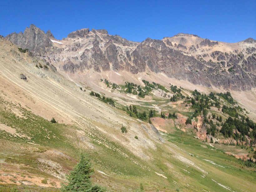 Um 16.00 ging es dann zurück zum Trailhead, 14 Meilen Autofahrt. Mit vollem Rucksack konnte es natürlich nur in eine Richtung gehen nämlich hinauf. Leider ging es wieder mal durch einen abgebrannten Wald rund um Mount Adams rum. Wir sind jetzt in der Mount Adams Wilderness und als nächstes kommen die Goat Rocks! Auf die freue ich mich schon lange.