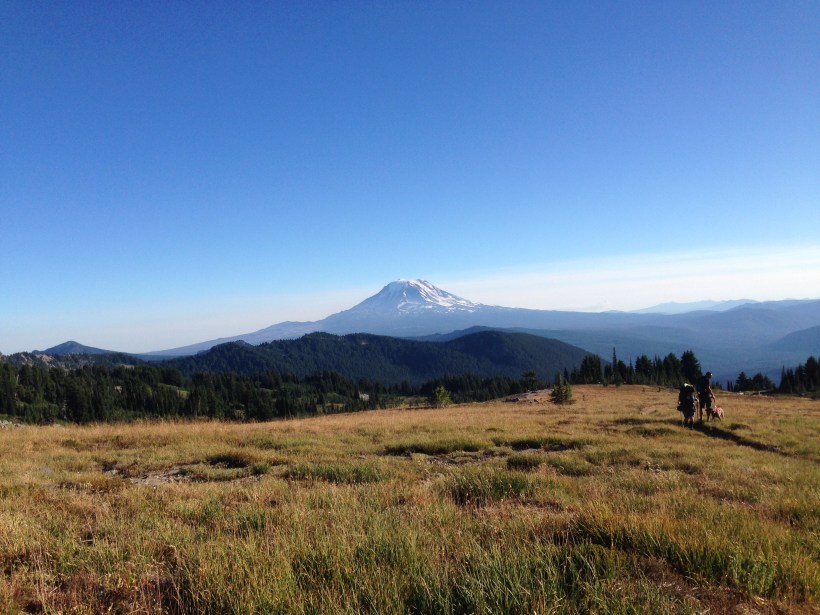 Ich campe mit White Spot und No Steps unterhalb von Mount Adams auf einer trockenen Wiese. Das lustige ist, dass ich vor drei Jahren den Blog der beiden verfolgt habe als sie zusammen den Appalachian Trail gelaufen sind und auch jetzt habe ich den Blog von White Spot abonniert. Die Hikerwelt ist doch klein oder? Ich habe in Bishopauch Carrot Quinn kennengelernt, ich in der Vorbereitungszeit zu meinem PCT-Abenteuer ihr Buch und natürlich Ihren Blog verfolgt. Da ich ihn immer noch abonniert hatte wusste ich, dass sie in Washington gestartet war und Southbound lief. Ich finde es toll, dass ich die Leute manchmal tatsächlich in real kennenlerne.