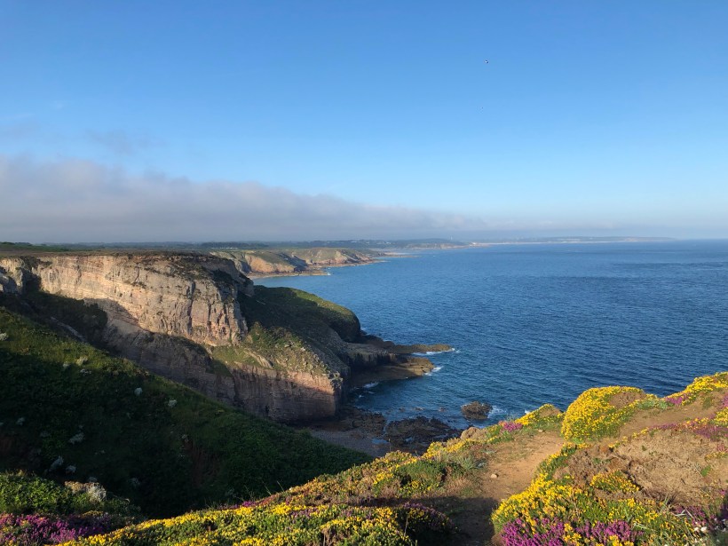 Am Nachmittag machte ich nochmals Pause an einem Strand. Ich wollte eine kleine Siesta einlegen aber dafür windete es einfach zu stark. Ich hatte die glorreiche Idee, meine Schuhe auszuziehen und barfuß am Strand entlang zu laufen. Ich wollte auch endlich mal wissen wie kalt der Atlantik ist. Er ist gar nicht so kalt whs. weil das Meer hier eher flach ist. Es war aber tierisch anstrengend ohne Schuhe zu laufen und deshalb setzte ich mich bald mal hin um meine Füße zu reinigen. Der Sand hier ist so fein, dass ich Mühe hatte meine Füße sauber zu bekommen. Aber erfrischt fühlten sich meine Füße trotzdem.