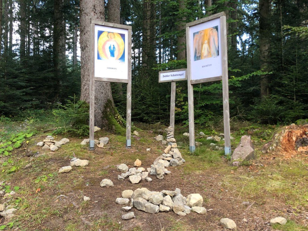 Nach Dobel ging es gleich in den Wald. Dort hat man einen Engelspfad angelegt mit Bildern und Sprüchen von verschiedenen Menschen wie z. B. Herman Hesse. Ich kam auch an einem Totem vorbei und 2 Bildern von Schutzengeln. Passte irgendwie zu diesem Wald. Ja und Schutzengel hatte ich auch auf diesem Wege wieder zur Genüge🙏.
