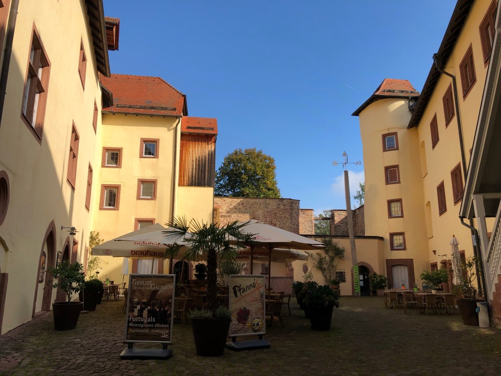 Die kleine Stadt Neuenbürg mit seinem Schloss war dermassen anstrengend, dass ich mich im Schlosshof im Restaurant mit einer Kürbissuppe stärken musste. Zuerst ging es auf der einen Seite extrem runter und dann auf der anderen Seite über ein unangenehmes Kopfsteinpflaster und Treppen wieder steil hinauf. Die Suppe hatte ich mir schwer verdient.