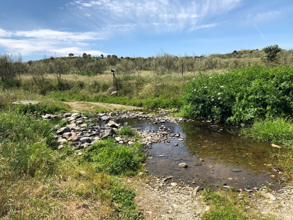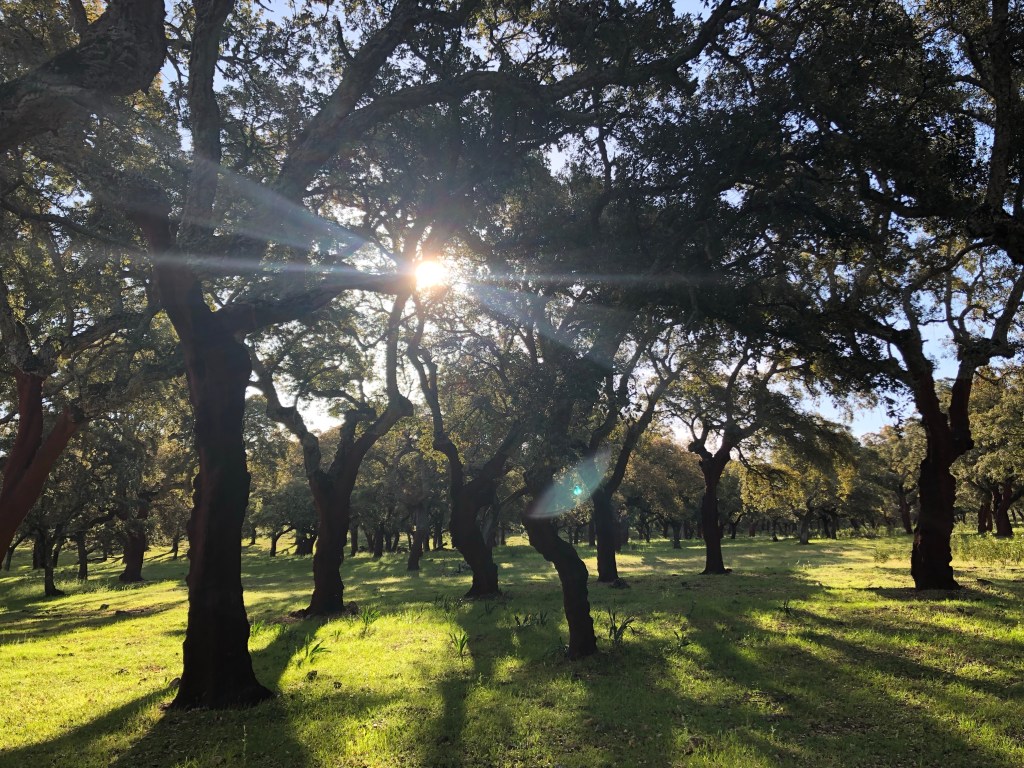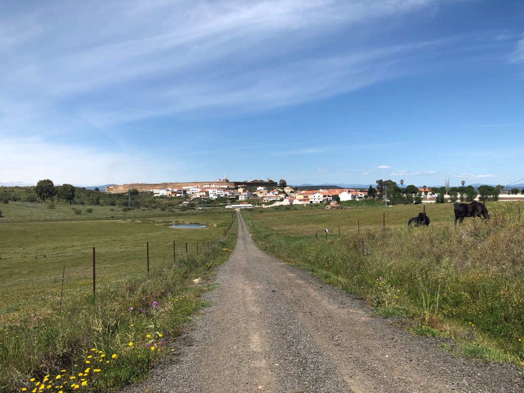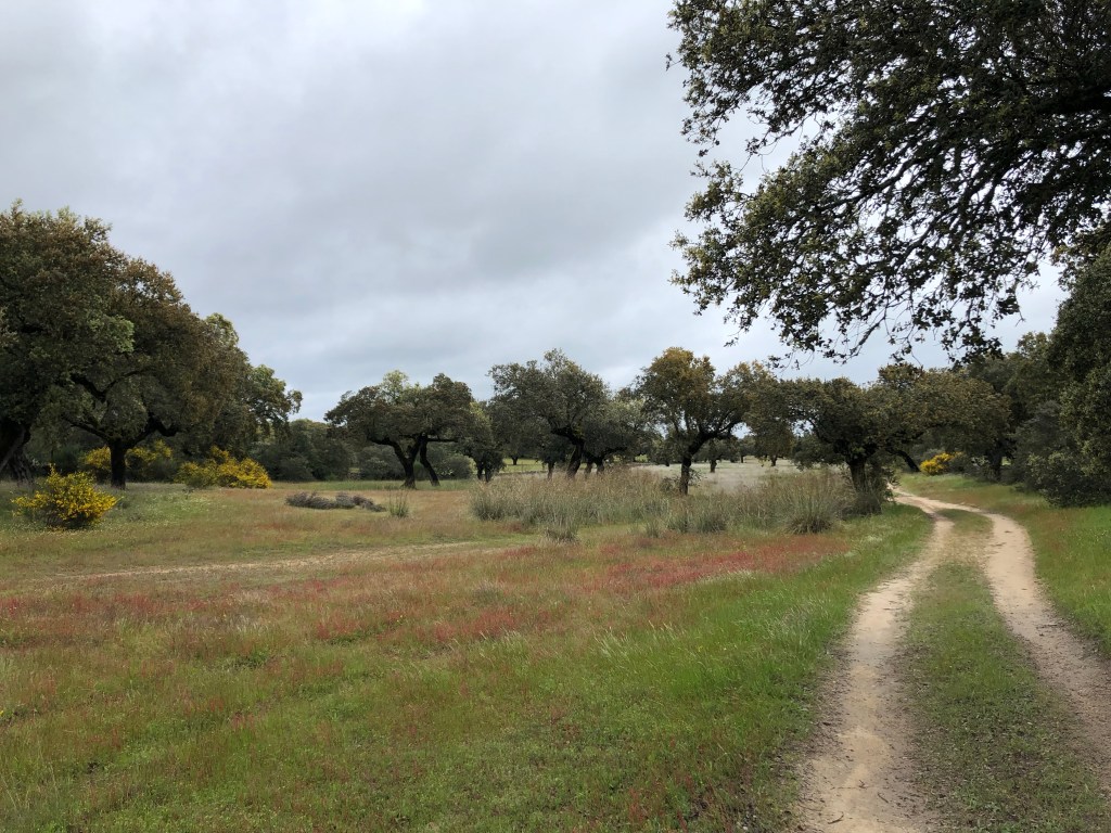 Der Weg war wieder sehr schön. Wir liefen durch Felder und dann wieder durch Korkeichenwälder. Es hatte mal wieder viele schwarze Schweine. Einmal scheuchte ich mit meinem Kommen eine ganze Herde auf die sich gerade genüsslich in einem Schlammloch wälzte.