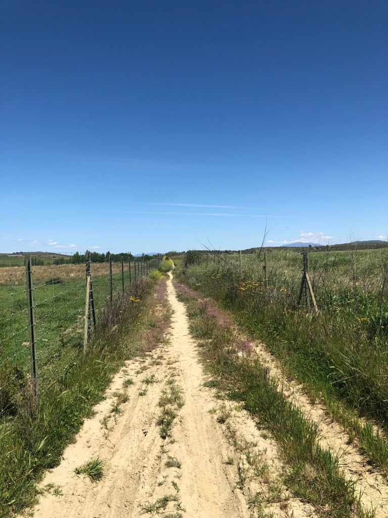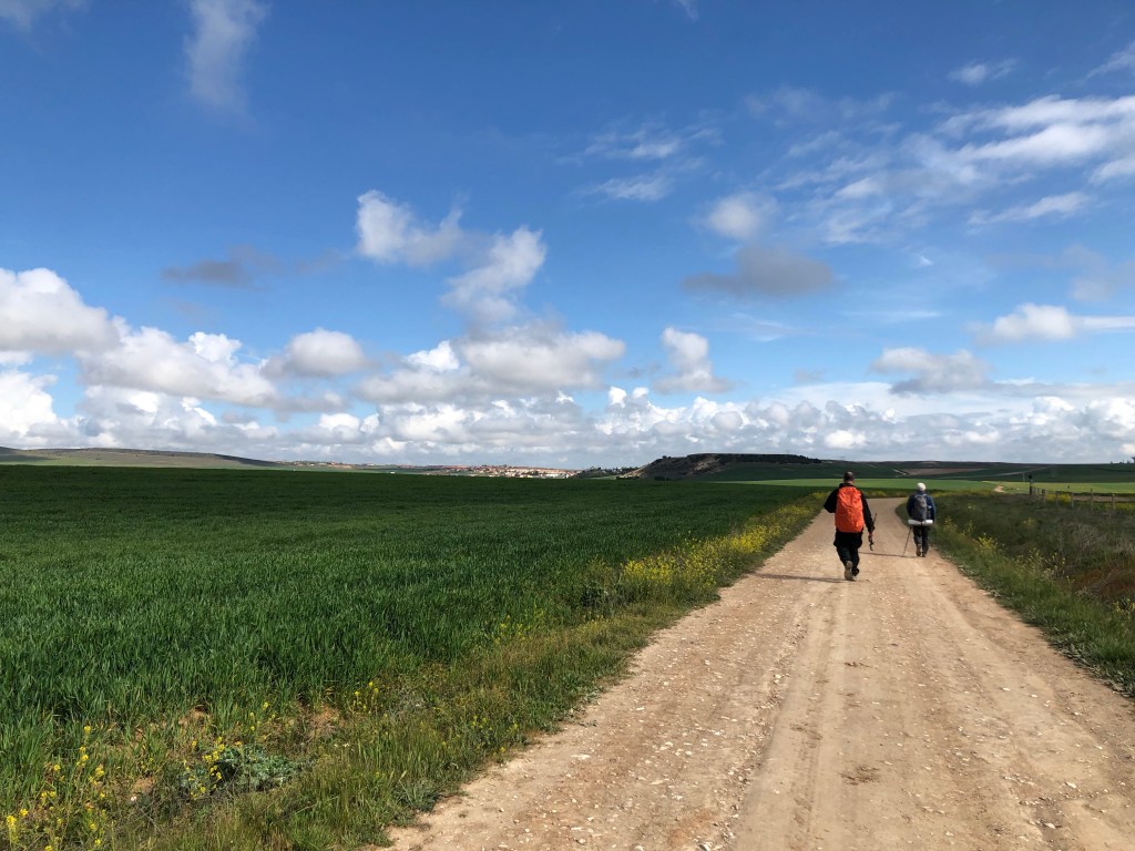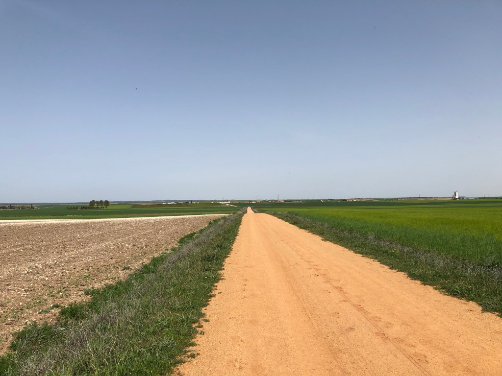 Wir liefen hier durch die Meseta. Das heißt eine baumlose flache Ebene mit Ackerbau. Viele Felder lagen aber brach, einige waren grün, andere sogar gelb.